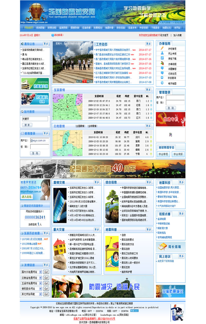 玉溪市防震减灾局(www.eqyx.com.cn)履行防震减灾行政执法职能,为市政府直属正县级事业机构,参照《国家公务员暂行条例》进行管理。玉溪市防震减灾局在玉溪市人民政府的领导下,根据授权承担玉溪市防震减灾工作政府行政管理职能,依法履行防震减灾主管机构的各项职责。