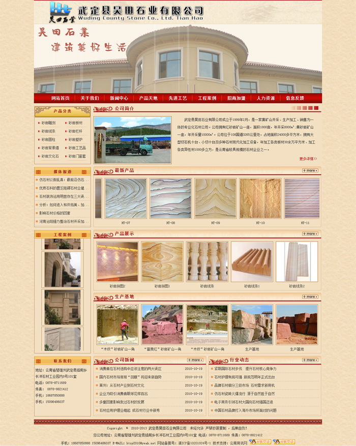 公司依托丰富的石材资源,采用现代化的加工设备,专注于生产各类砂岩产品。主要产品有各类砂岩板材、异型材、圆柱、浮雕产品等,产品远销全国各大中城市,并远销东南亚地区及欧洲地区。公司配备有高级工程设计师和工程施工队伍,承接大型星级酒店、会所、火车站、公园、地铁站、别墅、室内外装饰等大型工程的石材设计和安装。