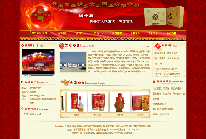 云南会泽铜乡食品酒业有限公司由1996年会泽县乡镇企业局《关于组建<中寨小锅酒厂>项目的批复》(会乡企【1996】44号)文件进行组建,公司注册了“铜乡”商标,2009年经过技改、扩建,工艺流程更加规范、合理,拥有固定资产400万元,占地22亩,从业人员32人,流动资金200万元,年设计能力可达1000吨白酒,年出栏仔猪2000头、肥猪2000头。2009年销售额达540万元,利润170万元。