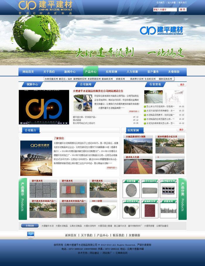 大理市建平水泥有限责任公司创办于上世纪90年代,是一家正规化、规模化的水泥制品专业企业,公司总部设在大理市下关镇国道214线(感通寺路口)。2010年3月增设喜洲镇文阁村水泥制管分厂,2011年12月增设大理建平石材加工厂,2012年7月增设剑川水泥制品分公司。公司总占地面积达4万多平方米。公司经十多年努力,通过ISO9001质量管理体系认证,取得国家钢筋混凝土排水管工业生产许可证,是云南省水泥制品协会会员单位,大理白族自治州川渝商会常务会长单位,质量诚信品牌服务 4A企业;荣获中国建设工程推进产品,建平钢筋混凝土排水管、检查井盖系列为2011年云南省水泥制品行业“名优产品”称号,“建平”已成为云南省知名品牌。过硬的产品质量和用户满意是我们追求的目标。