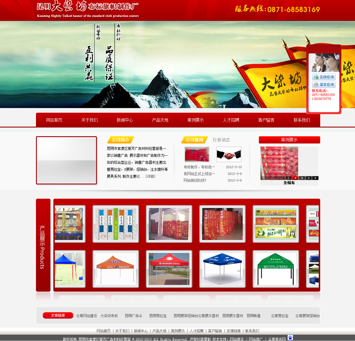 昆明市官渡区爱芹广告材料经营部是一家以销售和制作为一体的综合型企业,销售材料主要出售激光条幅布,手工丝印条幅布及激光条幅色带为主,制作主要以;丝网印刷,热转印;数码直喷。数码印花;滚筒转移印花主要生产批量彩色条幅,彩旗旗帜,椅套,门帘,车套,匹布数码印花等订单主要承接旗帜彩旗,彩色条幅横幅,定制个性鼠标垫/靠垫/抱枕,家纺,各种面料服装裁片数码印花打样及小批量生产,纺织品匹布印花等,也可用于花型较多、单个花型订单量较小的印花订单生产。优点在于:无需制版,一米起印,不必承担高额的制版费用,打样时间快捷(1-3天),花型更改方便,打样成本低,颜色不受任何限制,印刷精度高,颜色鲜艳亮丽,耐日晒水洗,印前印后手感无区别,透气性好,无污染等。丝网印刷主要制作,单色布标,套色布标等。多年来,公司一直致力于热转印产品技术的进一步研究与开发,把彩印,数码印花,热转印,丝网印,四种不同的工艺成功的结合在一起。不但大大降低了成本,提高了效率,而且使升华转印,丝网印产品的质量得到了进一步的提高。加上云南劳动力的优势和昆明四通八达的交通便利,使我公司的产品在越来越激烈的竞争中成为西南地区大批广告公司,企业,外贸公司,礼品公司等客户制作热转印,及丝网印产品最终定点厂家。