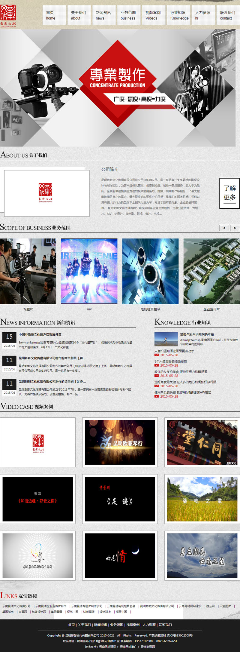 昆明彰彰文化传播有限公司视频服务业务主要包括:企事业宣传片、专题片、MV、纪录片、微电影、影视广告片、电视栏目包装、晚会、聚会等制作服务。