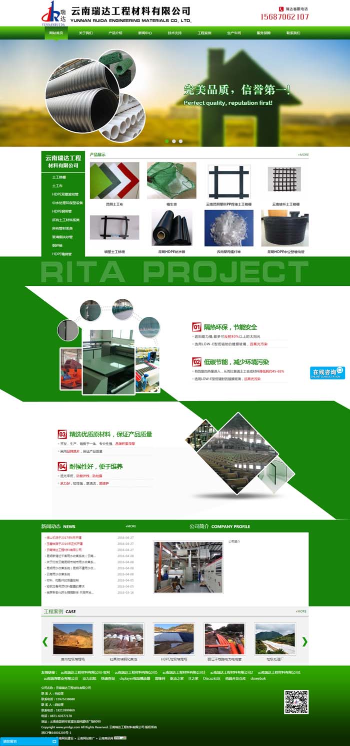云南HDPE防渗膜|昆明复合土工膜|云南土工布|昆明土工格栅|土工格室|钢纤维|聚丙烯纤维|土工网|生态带|美植袋||植草格|土工膜焊接机|GCL膨润土防水毯|云南软式透水管|昆明钢纤维|聚丙烯纤维|塑料盲沟|HDPE双壁波纹管|碳素管|钢带管|缠绕管|云南HDPE燃气管|昆明钢丝网骨架管|云南昆明雨水收集系统|云南碳素钢|昆明cpvc电力管|云南玻璃钢夹砂管|昆明玻璃钢化粪池|塑料检查井|昆明PP焊接土工格栅|HDPE给水管|PE热缩带|昆明闸阀配件|铸铁井盖|昆明排水板|云南蓄排水板|七孔梅花管|云南昆明边坡防护网|预应力波纹管|打孔波纹管|丹强丝|混凝土添加剂|PP-R管产品广泛应用于环保环卫、水利、市政工程、园林、石化、矿业、建筑、水产养殖、盐业等防渗工程和高速公路、铁路、大型电站等项目工程。
