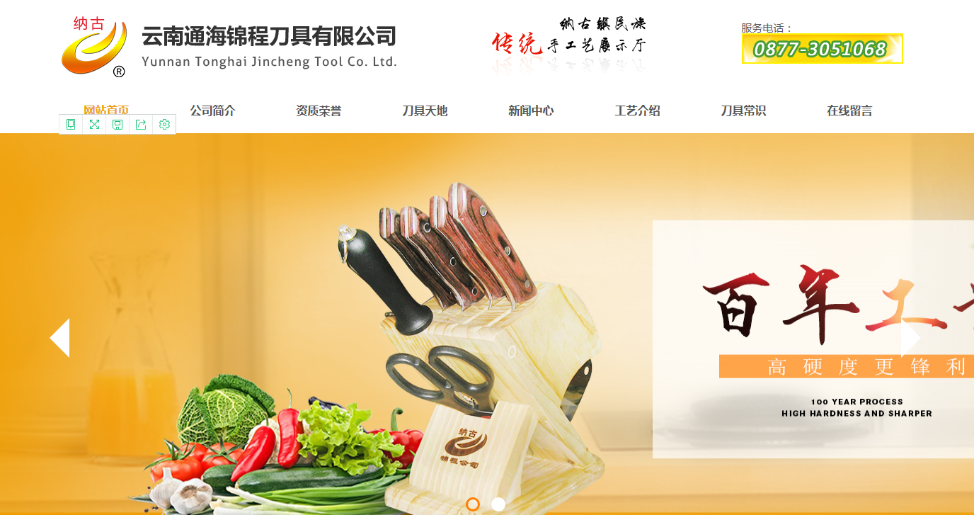 云南省通海锦程刀具有限公司愿与各界人仕携手合作,共创明天辉煌。中国玉溪通海刀具简介通海县纳古镇素有"手工业之乡"的美誉,刀具生产的历史非常悠久。早在元代,纳古先辈就是军中的随军工匠,当时主要生产马具、军需品、军用刀剑和民用刀具,刀具生产工艺精湛,并一直传承至今。上世纪七十年代,通海纳古的刀具在全国就享有盛名,"通海刀具"已成为一个知名品牌,无论在产量、质量还是生产工艺上,都处在全国领先的地位,产品供不应求。当时几乎家家户户都在生产刀具,从业人员10000多人,年产量达800万把,产值达2000多万元,成为通海纳古的支柱产业,培养了一大批技术人才,积累了大量的民间资金,为纳古镇今天的发展奠定了坚实的基础。