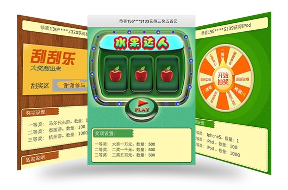 大转盘、刮刮卡、水果达人 客户互动很轻松